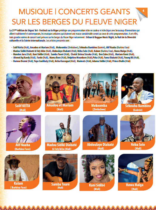 La 20ème édition de Ségou' Art - Festival sur le Niger 2022, se tiendra du 31 janvier au 04 février 2024 à Ségou (Mali)